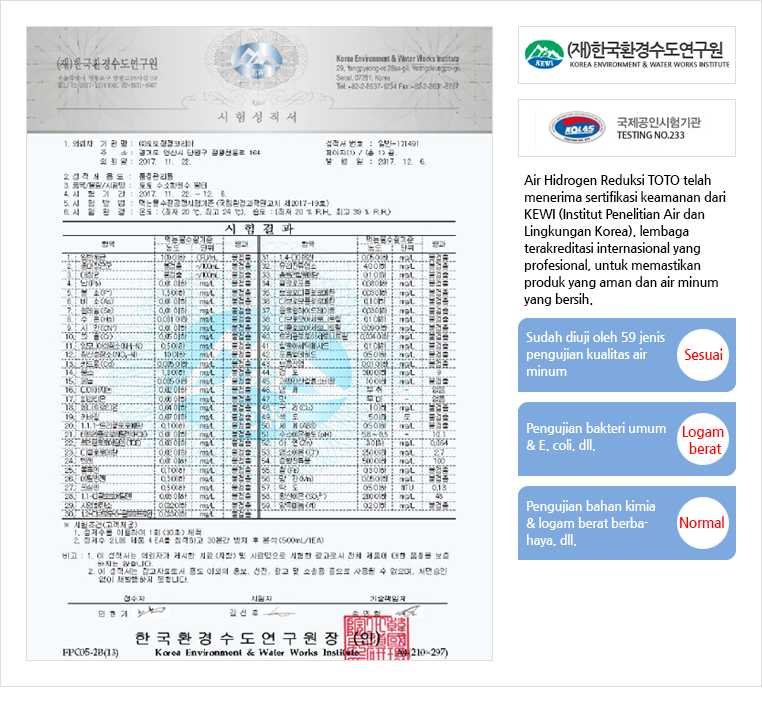 Sertifikasi TOTO - KEWI (Institut Penelitian Air dan Lingkungan Korea)